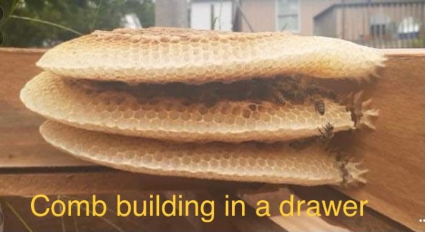 Now that’s some wonky comb. The bees don’t always follow a blueprint when building. They create what best suits their needs.